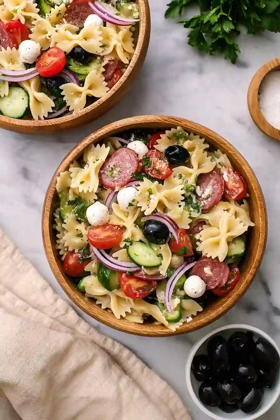 For pasta salad, you’ll want to stick with short, sturdy pasta shapes that can hold up to the dressing and catch all those tasty bits of salami and veggies. Rotini, penne, farfalle (bow ties), or fusilli are all great choices because their shapes and ridges help the dressing cling to every bite. I’d avoid long noodles like spaghetti or fettuccine since they’re harder to eat in a cold salad and don’t mix as well with the other ingredients. Whether you go for regular, whole wheat, or even a gluten-free variety, just make sure to cook your pasta al dente and rinse it with cold water after draining to stop the cooking process and cool it down for the salad.