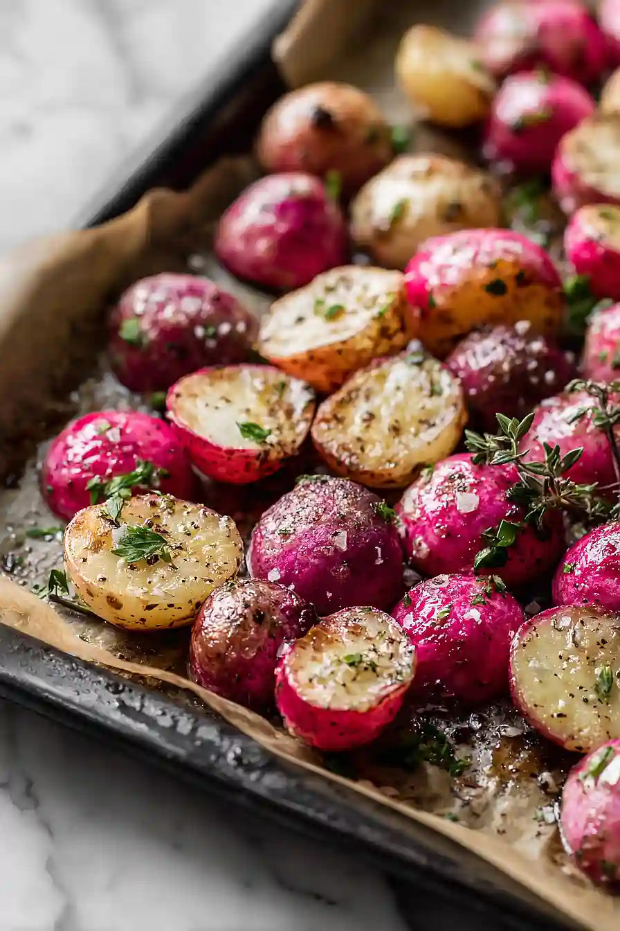 - Mild, buttery flavor – Roasting transforms the sharp, peppery taste of raw radishes into something mellow and slightly sweet with crispy edges.